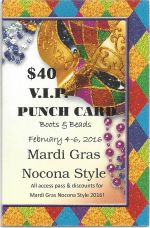 Purchase a Mardi Gras VIP Punch Card for $40 and it includes entry to ALL of the events marked with an asterisk below!!! (Call the Nocona Chamber of Commerce to purchase: 825-3526)