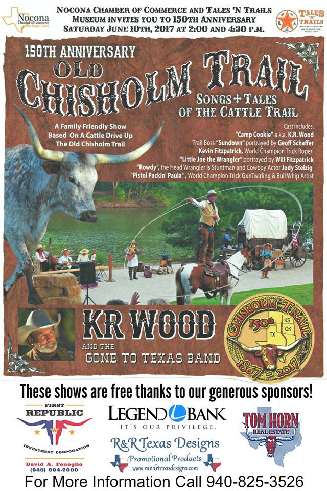 Free Shows at 2pm and again at 4:30pm at the downtown park in Nocona following the Chuckwagon Stew & Peach Cobbler Lunch ($10) at noon.